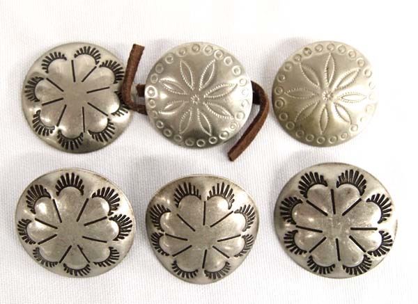 6 Vintage Native American Navajo Sterling Silver Buttons, fabulous stampwork details, measure 1.25''D, 22.4g in total wt.