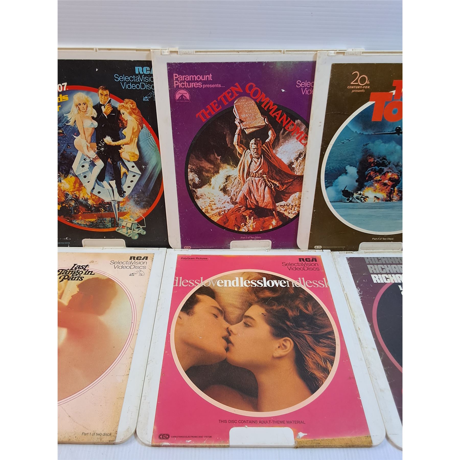 (6) Vintage Video Discs: Sean Connery Bond, Ten Commandments, Richard Pryor, Misc