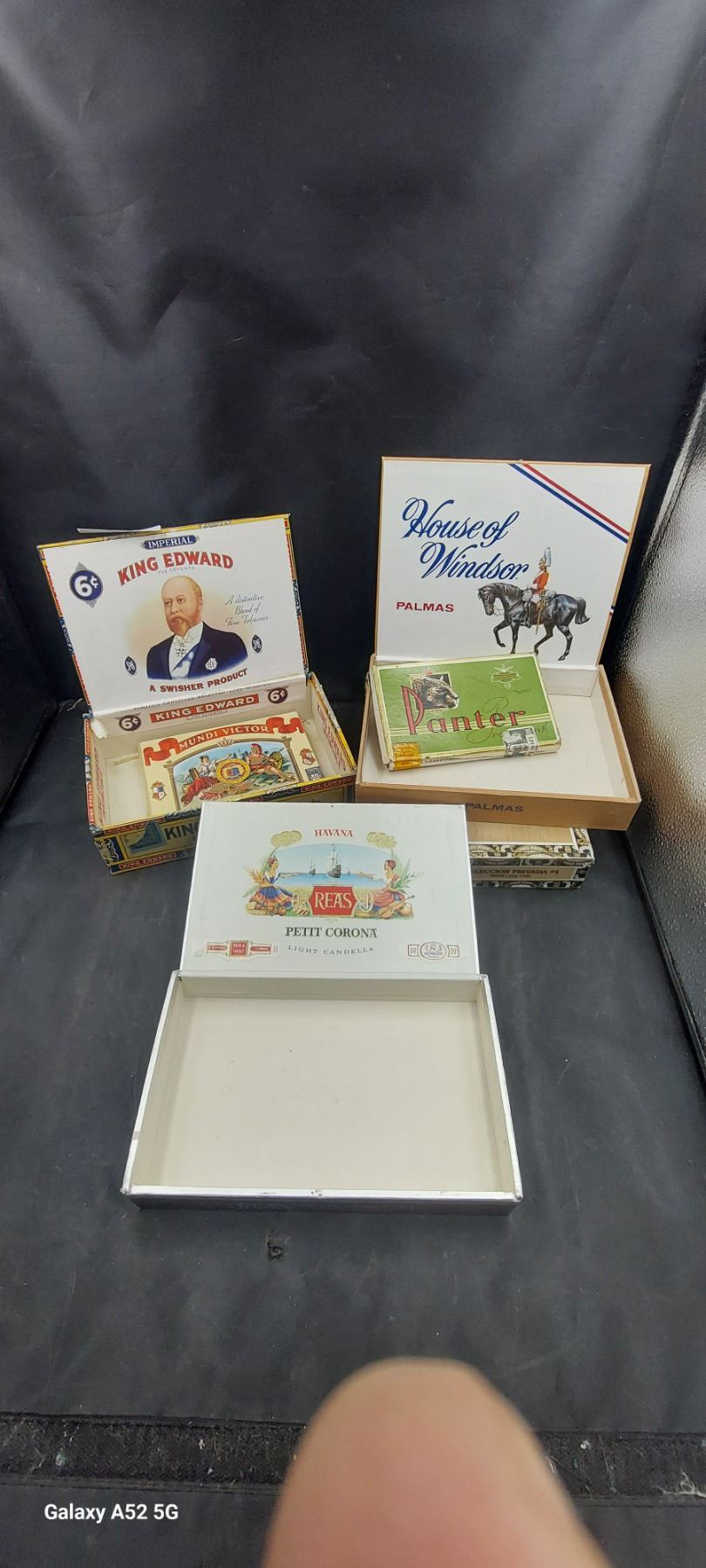 6 Vintage cigar boxes assorted sizes all with amazing graphics