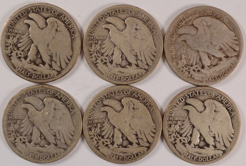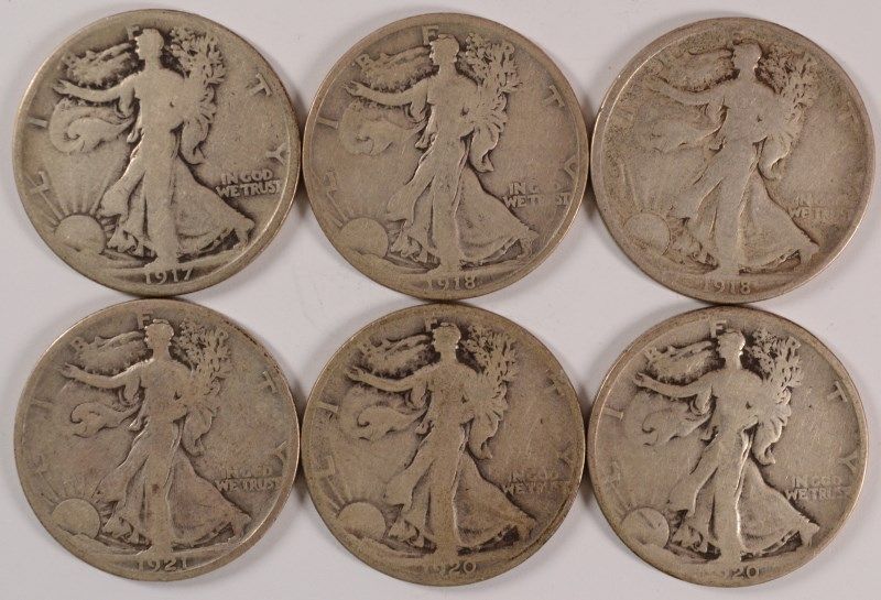 (6) WALKING LIBERTY HALF DOLLARS (17, 18, 18-S, 20-S, 20-D, 21-S)