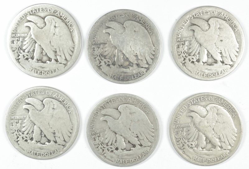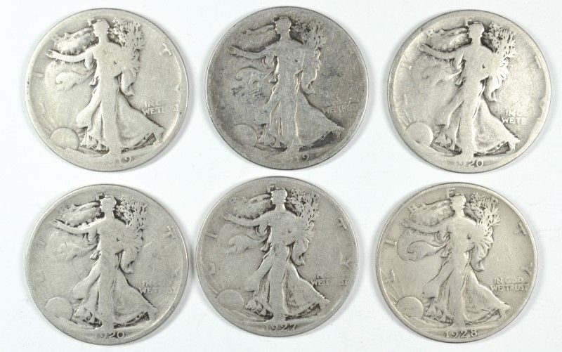 (6) WALKING LIBERTY HALF DOLLARS (19-D, 19-S, 20, 20-S, 27-S, 28-S)