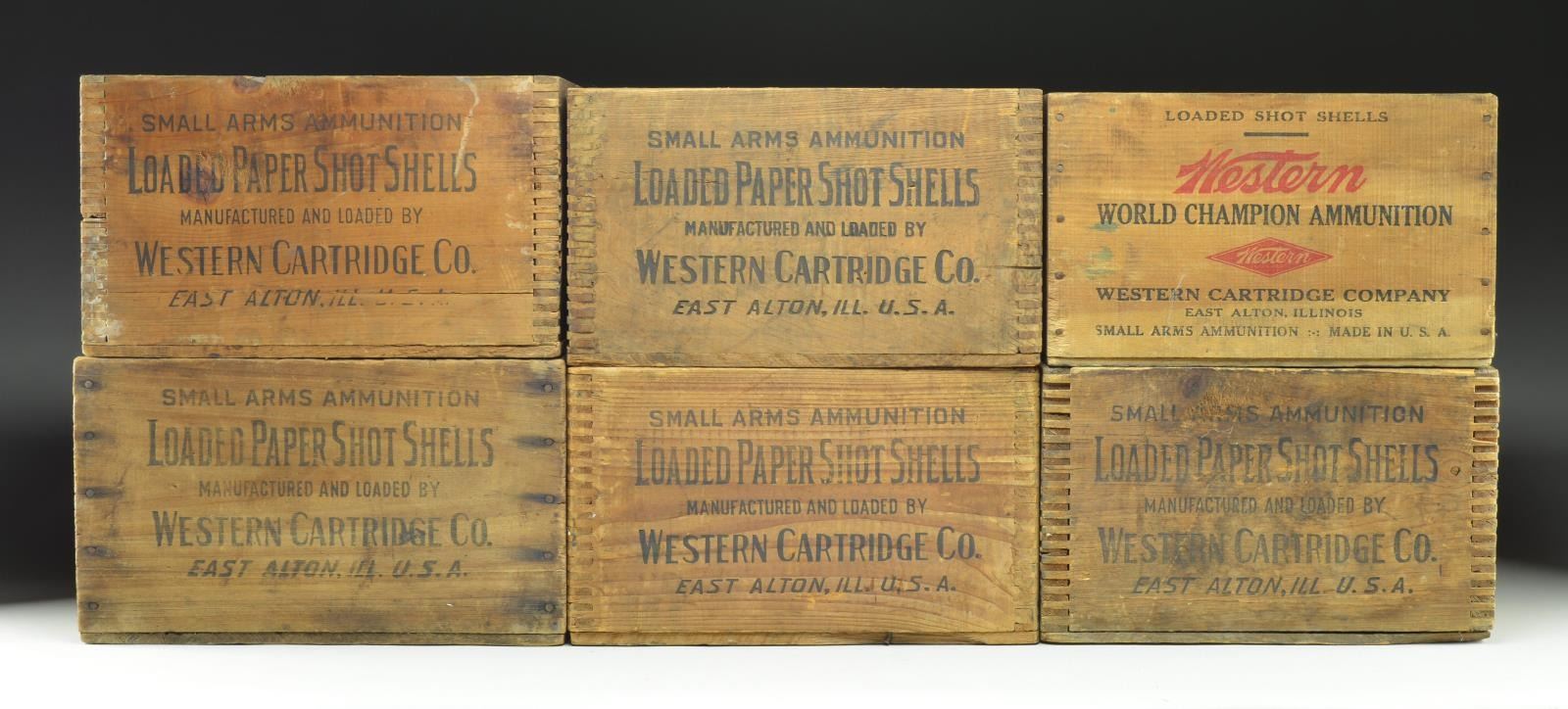 1 Field 12 Ga., 2 5/8". / 2 Field 12 Ga., 2 3/4". / 2 Xpert 12 ga., 2 3/4". / 1 Field 10 Ga, 2 7/8". CONDITION: fair to good overall w/ some fading to exterior paint, missing pieces of wood, staining, cracks, & dents. (02-16599-14/MD). $150-300.