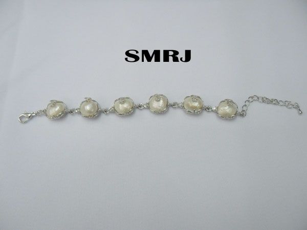 6 WHITE KISHI PEARLS SILVER BRACELET *** METAL: SILVER; **|**|** 6 WHITE KISHI PEARLS SILVER BRACELET *** METAL: SILVER; APPROXIMATELY 10 GRAMS ; MSRP: $500
