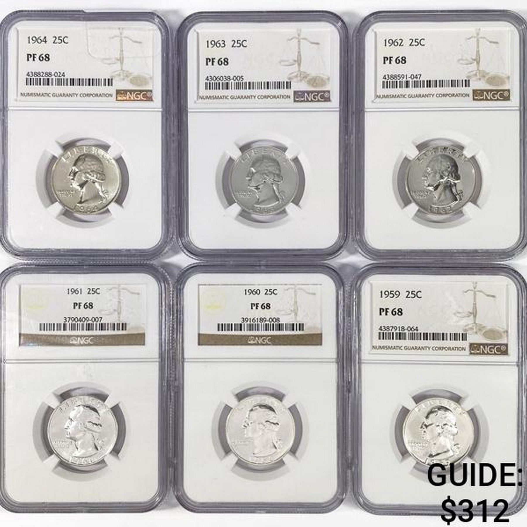 (6) Washington Silver Quarter NGC PF68 1959-1964