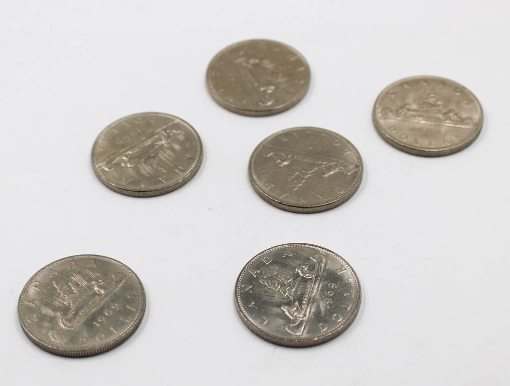 6 X 1969 CANADA ONE DOLLAR COINS CANOE