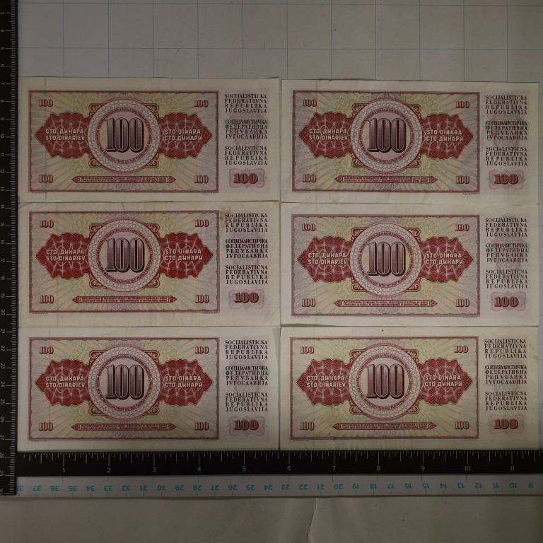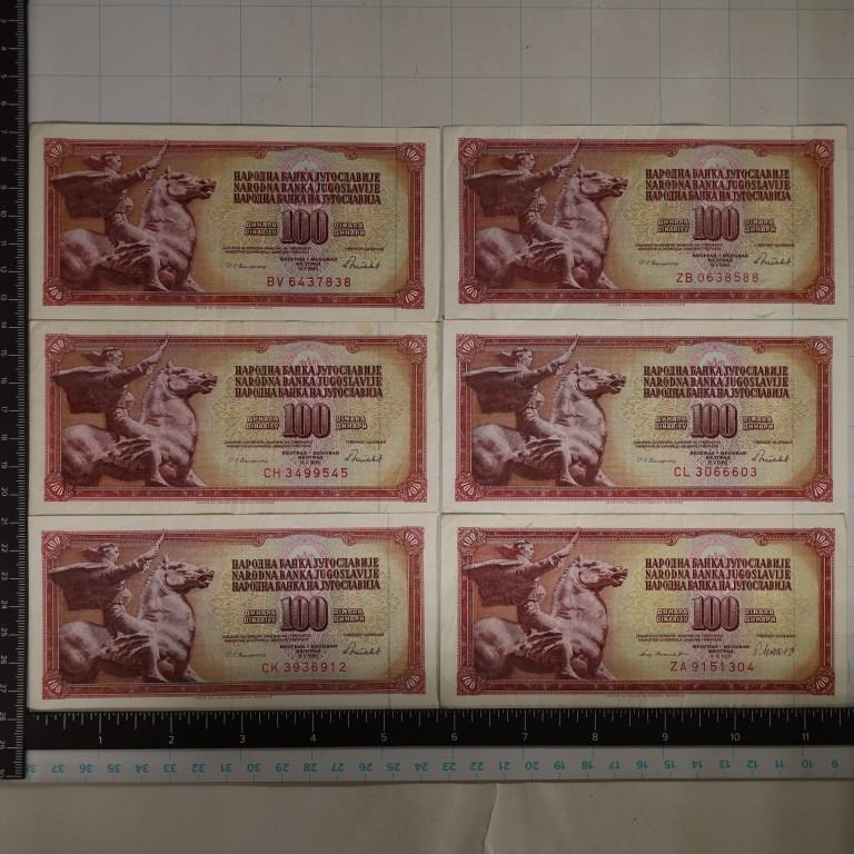 6-YUGOSLAVIAN 100 DINARA BILLS