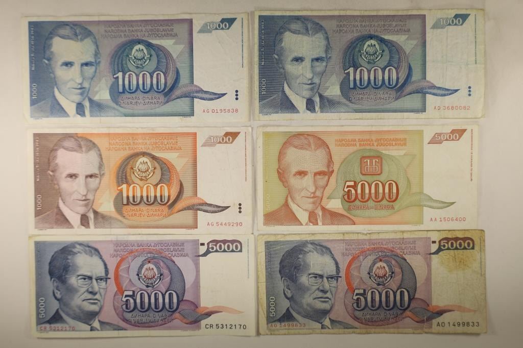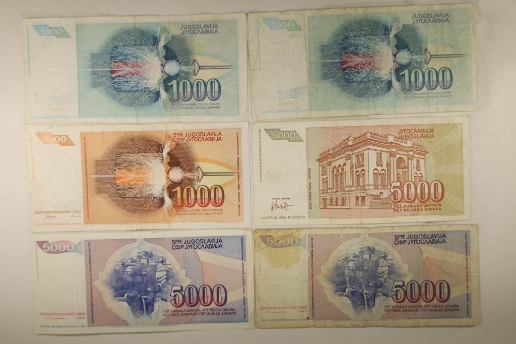 THOUSAND DINARA AND 2-1985 & 1993 FIVE THOUSAND DINARA. 1-5000 BILL IS RIPPED