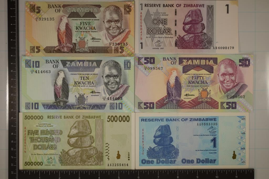 STAIN UPPER RIGHT CORNER, 5 KWACHA, 10 KWACHA, 50 KWACHA, 2008-$500,000 AND 2009 $1