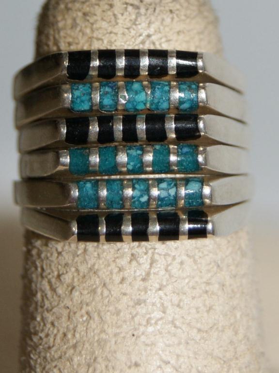 (6) Zuni Ultra Fine Inlay Gemstone Rings - Turquoise and Onyx Sold as One Lot