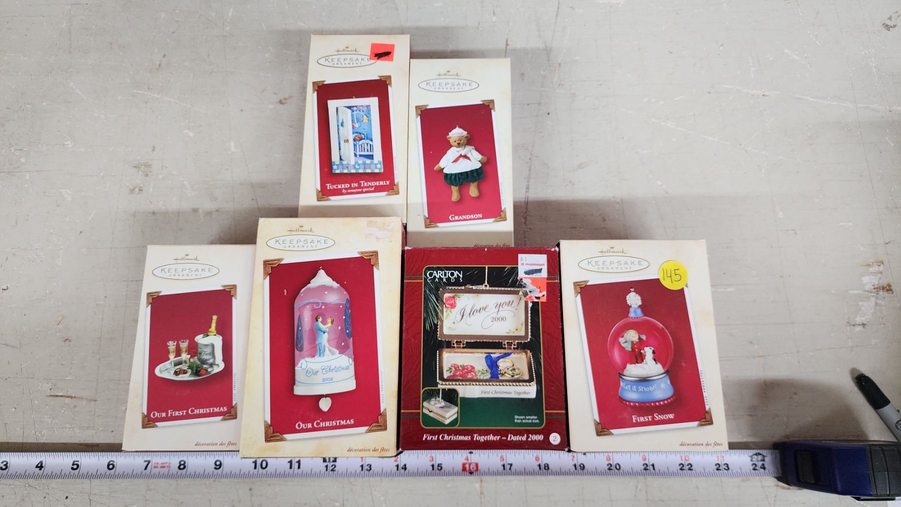 6 assorted "Hallmark" collectible tree ornaments - like new, never used