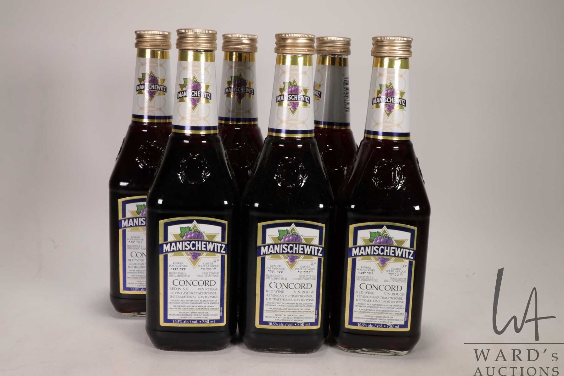6 bottles of Manischewitz / Concord / 750ml / 10.5% ABV Note: Alcohol cannot be insured by any courier in Canada. Local pick up is recommended. Canadian bidders only