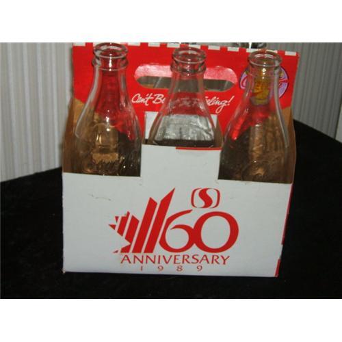 This is a nice collectable,the bottles are all in nice shape, no chips or cracks. the case is in real good shape. I don't know if these are the original bottles for case. the case is written 60 Aniversary 1989.the bottles have Non Refillable on them, the letter L5 L8 L22 L10 L11 L5 is on bottom. Very nice!!!