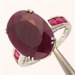* Center Gem Type: 6 ct Genuine Rubies * Center Gem Cut: Oval Cut * Accent Gem Type: 6 Genuine Rubies * Accent Gem Cut: Round Full Cut * Metal Type: Solid White Gold * Metal stamp: 10K * "Solid 10k Gold" Ring Setting - "NOT" Plated Base Metals * Size: 7.5