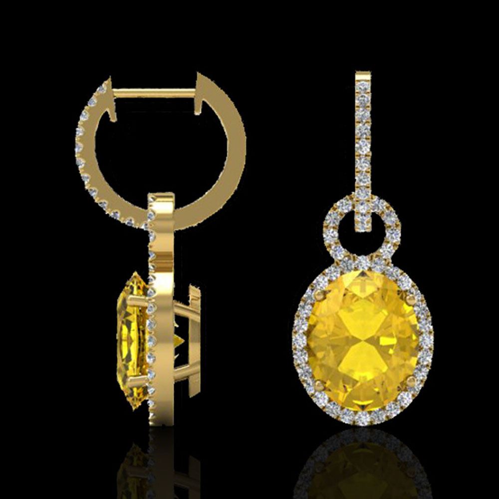 REF-98X2A - SKU: 22733 ---- 6 ctw Citrine & Micro Pave Halo VS/SI Diamond Earrings 14k Yellow Gold