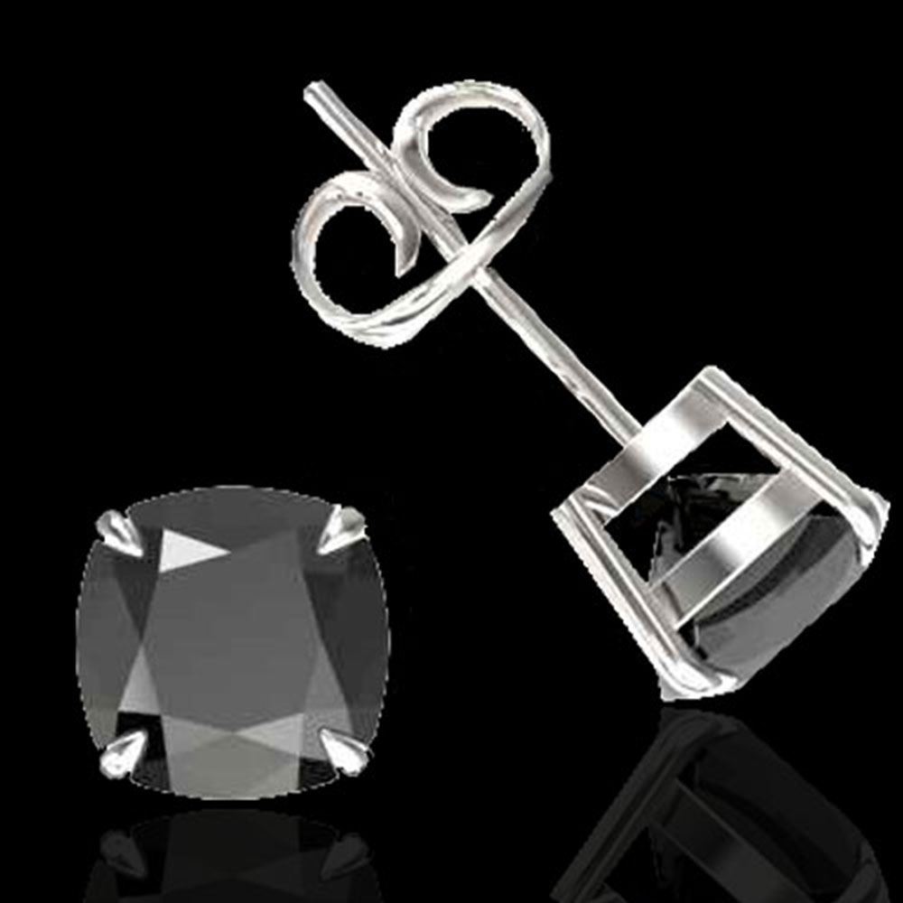 REF-163Y6X - SKU: 21735 ---- 6 ctw Cushion Black Diamond Designer Earrings 18k White Gold