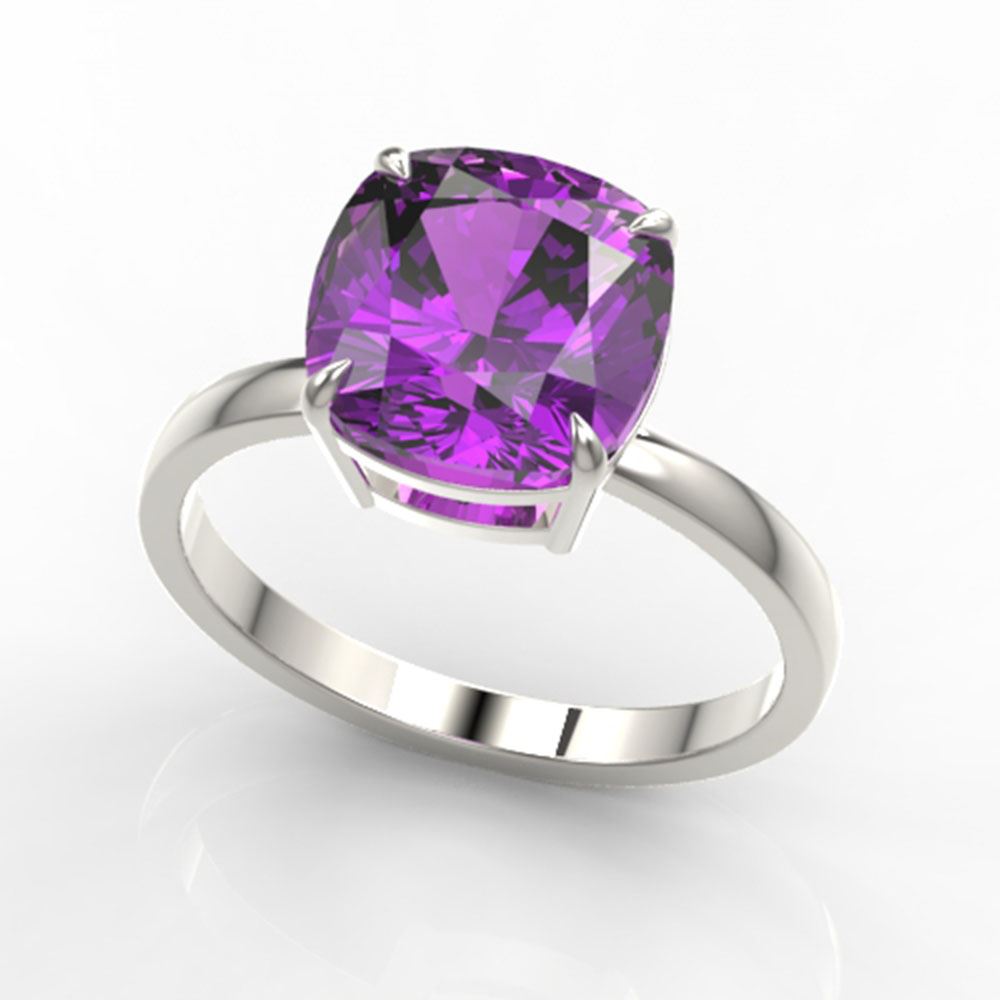 REF-29F3M - SKU: 22169 ---- 6 ctw Cushion Cut Amethyst Designer Engagment RNG 18k White Gold