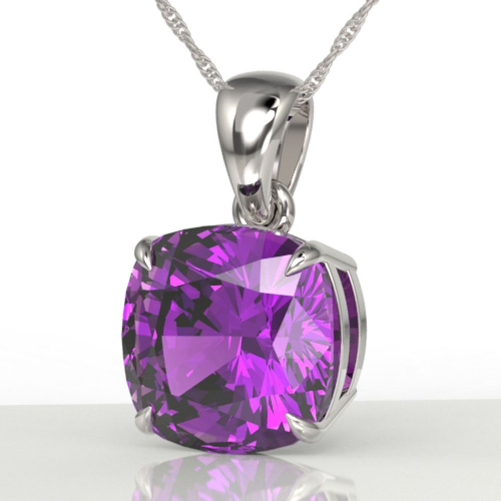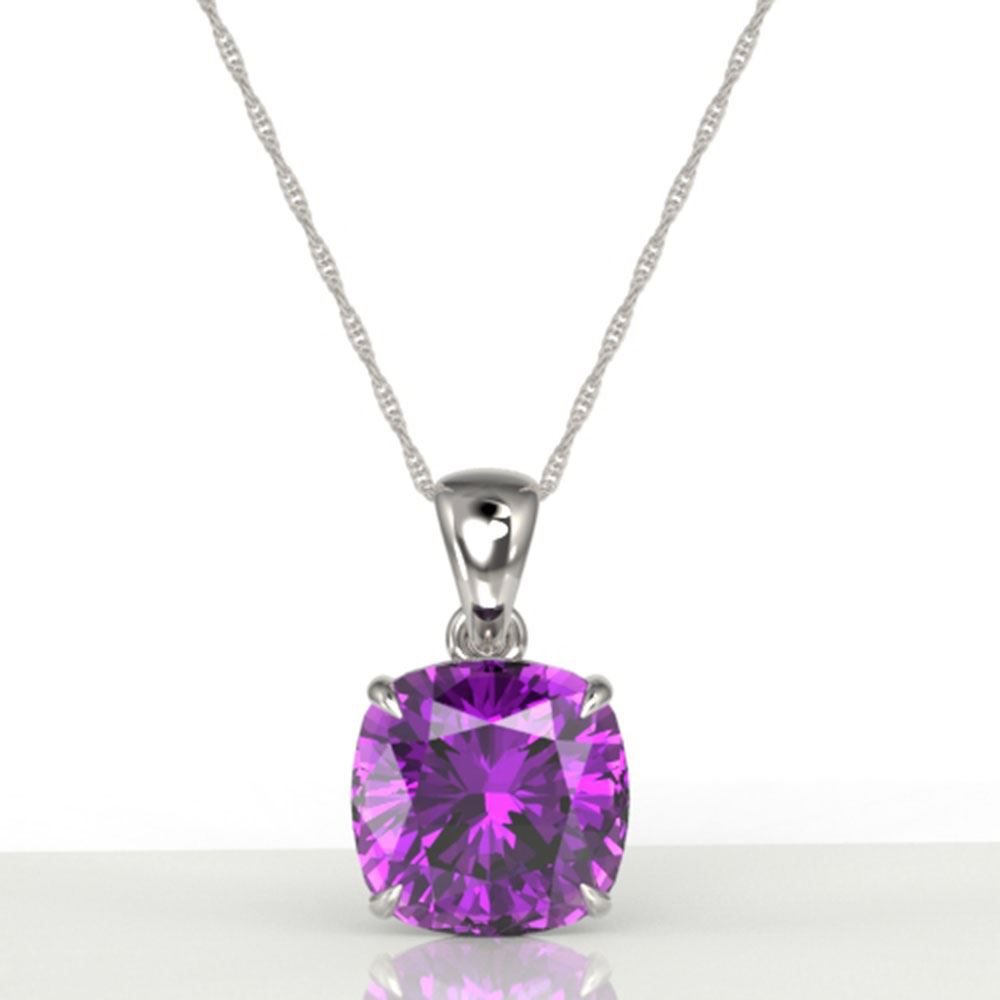 REF-31G5W - SKU: 21969 ---- 6 ctw Cushion Cut Amethyst Designer Solitaire Necklace 18k White Gold