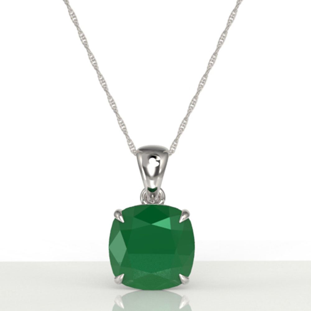 REF-49K3Y - SKU: 21980 ---- 6 ctw Cushion Cut Emerald Designer Solitaire Necklace 18k White Gold