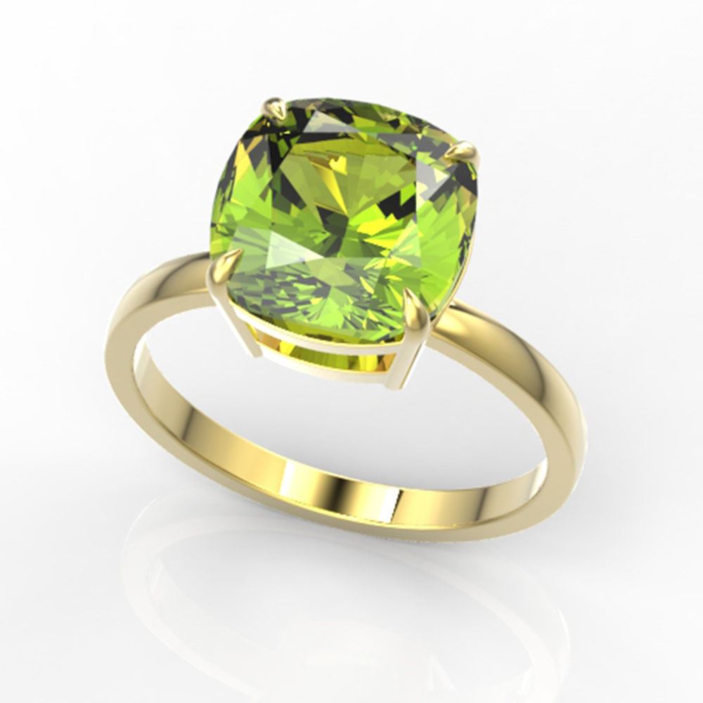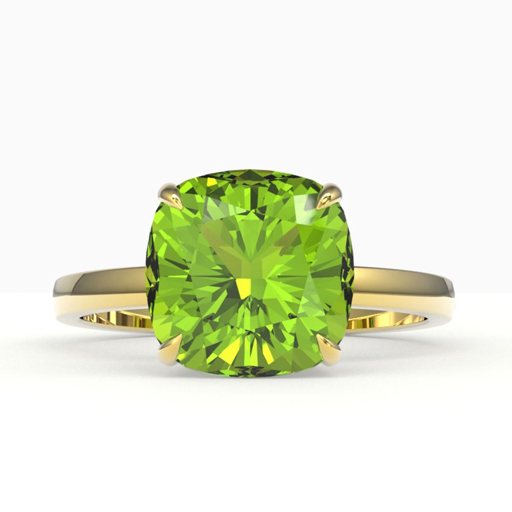REF-47M2G - SKU: 22194 ---- 6 ctw Cushion Cut Peridot Designer Stud Ring 18k Yellow Gold