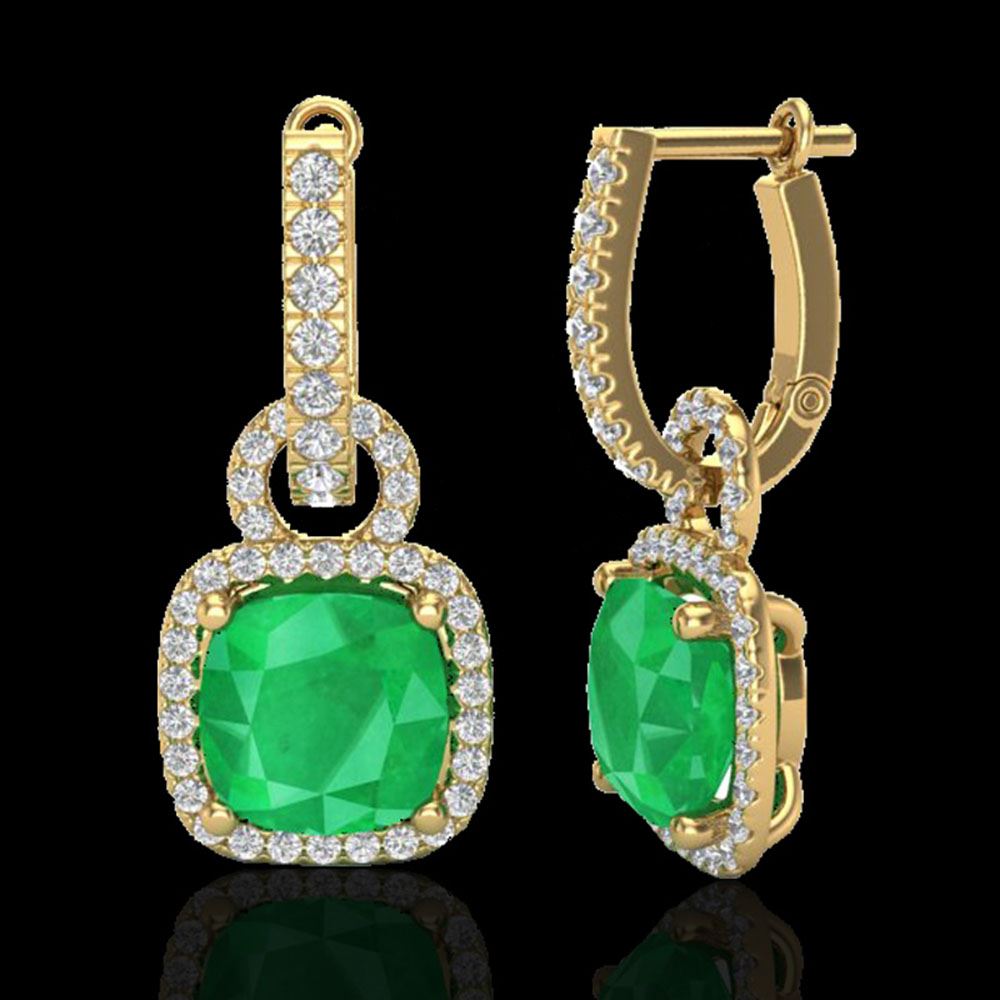 REF-125F5M - SKU: 22962 ---- 6 ctw Emerald & Micro Pave VS/SI Diamond Earrings 18k Yellow Gold
