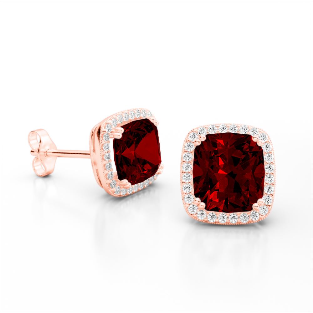 REF-50F8M - SKU: 22804 ---- 6 ctw Garnet & Micro Pave VS/SI Diamond Halo Earrings 14k Rose Gold