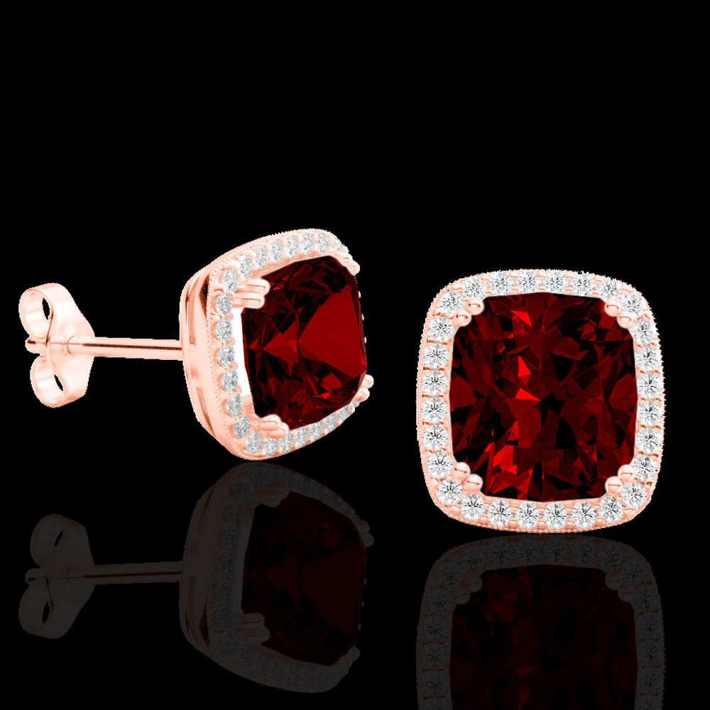 REF-50G8W - SKU: 22804 ---- 6 ctw Garnet & Micro Pave VS/SI Diamond Halo Earrings 14k Rose Gold