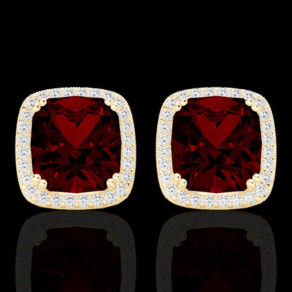 REF-76H4R - SKU: 22805 ---- 6 ctw Garnet & Micro Pave VS/SI Diamond Halo Earrings 18k Yellow Gold