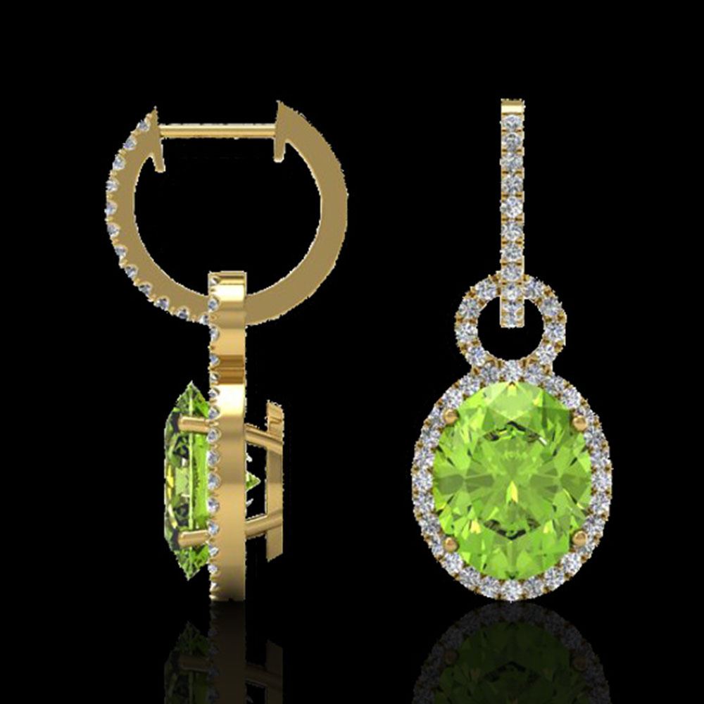 REF-104W4H - SKU: 22742 ---- 6 ctw Peridot & Micro Pave Halo VS/SI Diamond Earrings 14k Yellow Gold