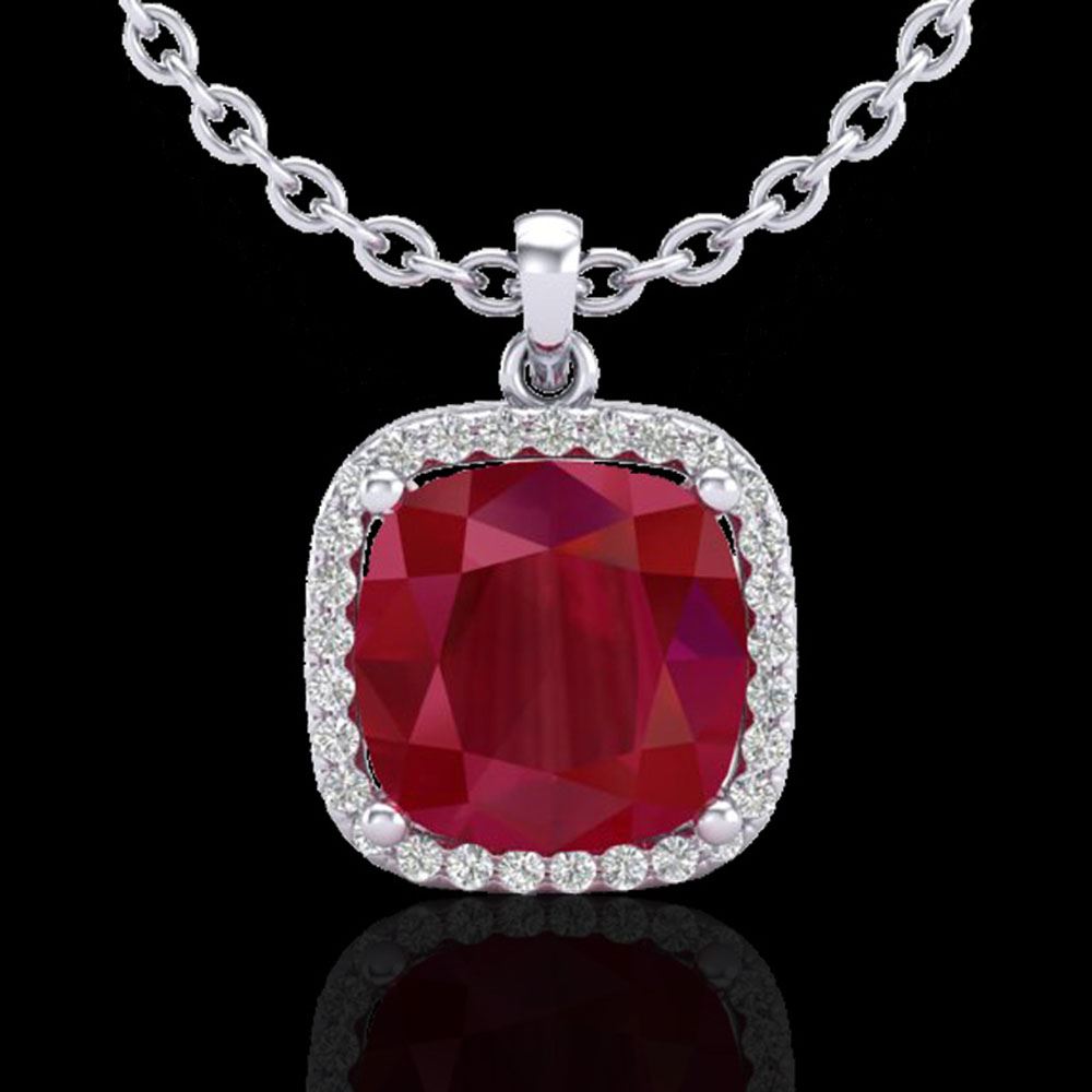 REF-85X5A - SKU: 23084 ---- 6 ctw Ruby & Micro Pave Halo VS/SI Diamond Necklace 18k White Gold