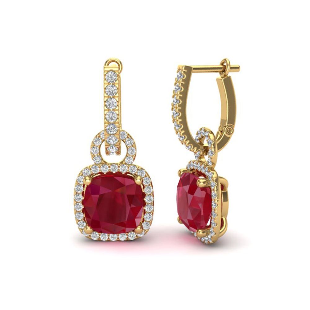 SKU: 22969 ---- 6 ctw Ruby & Micro Pave VS/SI Diamond Certified Earrings 18k Yellow Gold