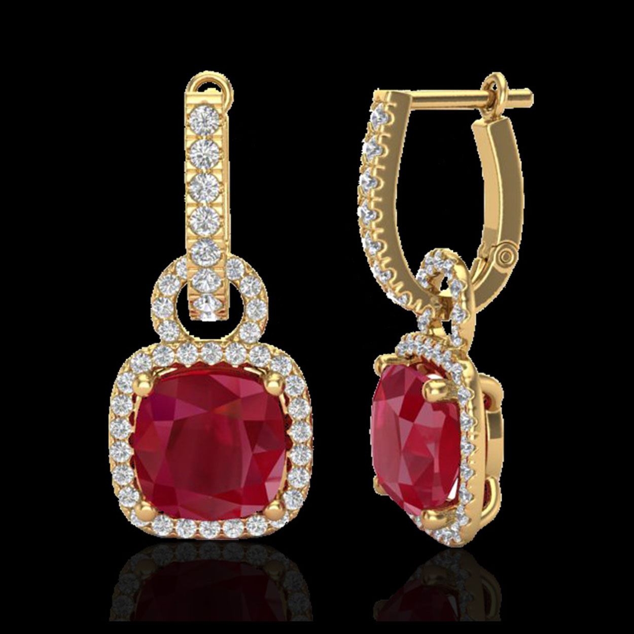 6 ctw Ruby & VS/SI Diamond Earrings 18K Yellow Gold