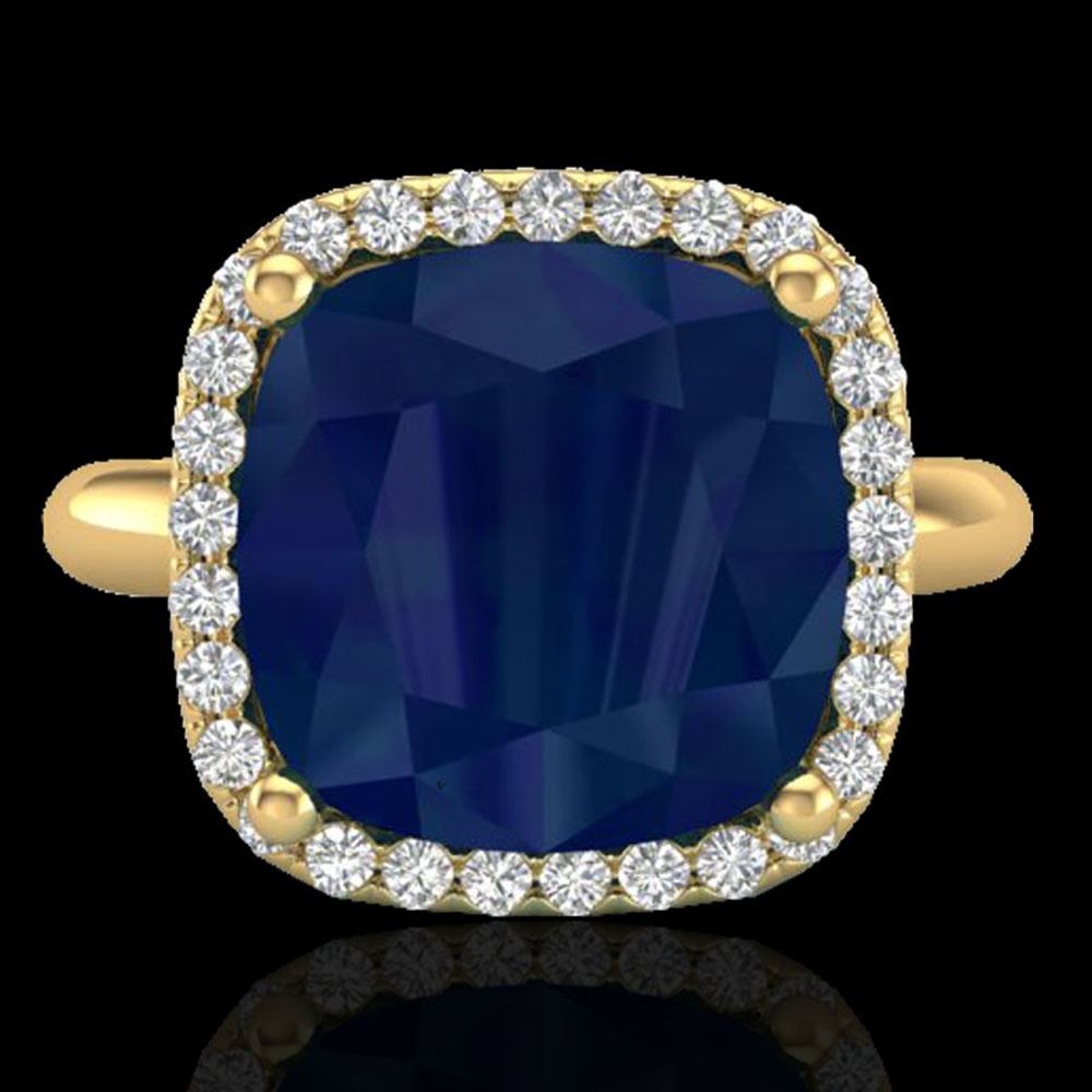 REF-77M3G - SKU: 23105 ---- 6 ctw Sapphire & Micro Pave Halo VS/SI Diamond Ring 18k Yellow Gold