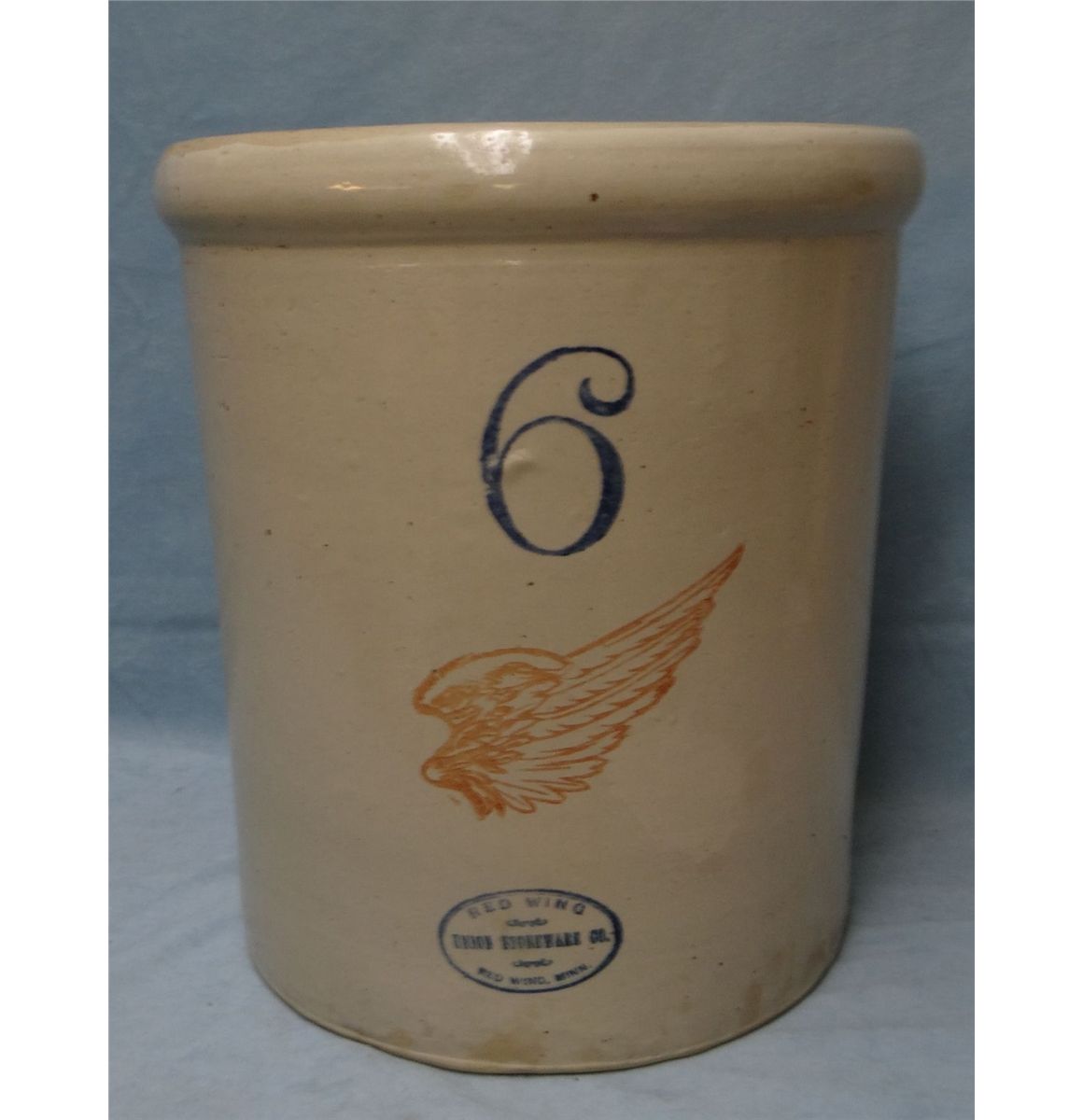 6 gal RW union stoneware co. crock w / 6 in wing, mint