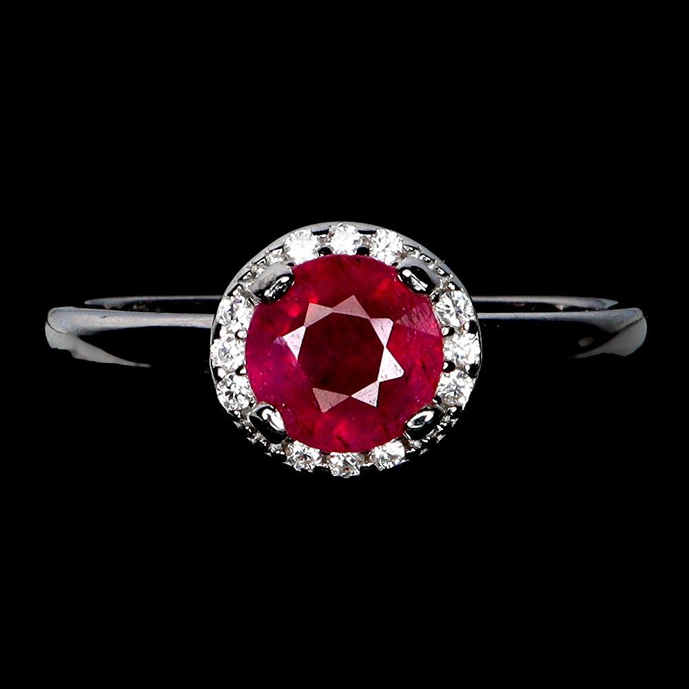6 mm ROUND RUBY RING IN 14K WHITE GOLD PLATED OVER 925 STERLING SILVER - SIZE 6 - APPRAISED REPLACEMENT VALUE CAD 355