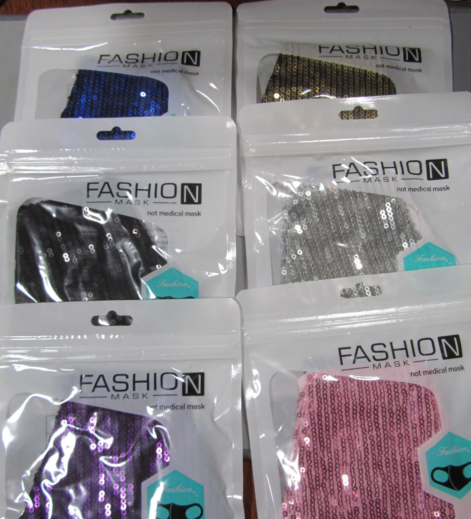 6 pack Glitter Fabric Mask with Adjustable Ear Loops, washable, reusable