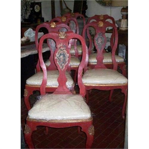 6 18th c. Rococo painted Italian chairs, circa 1750