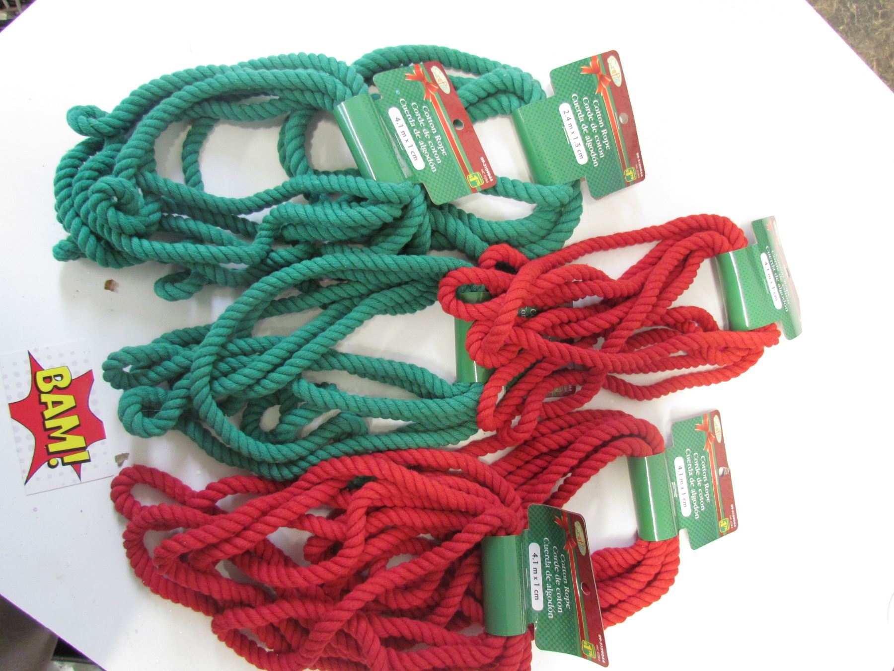 6 pc Cotton Rope 3 Green 3 Red