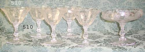 6 pcs. – 5 Rose Point sherbets (2 with nicks), Rose Point 4 ½” compote