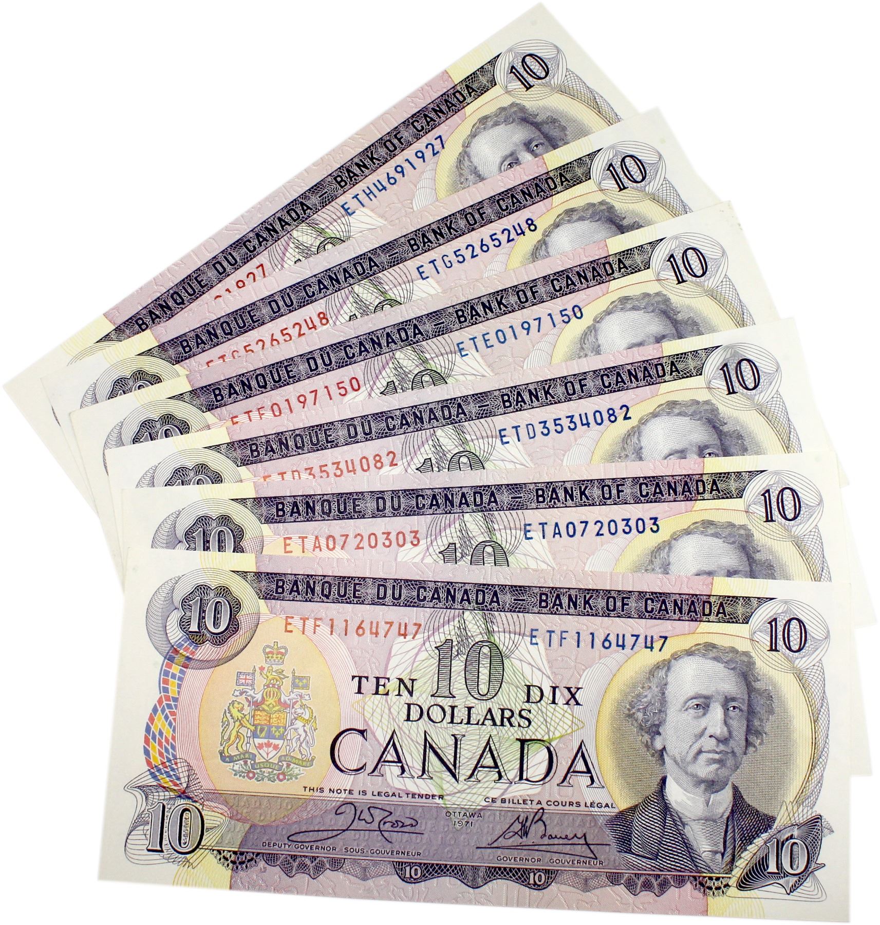 6 x 1971 $10 Crow-Bouey 3-letter prefix. UNC or +. All different prefix.