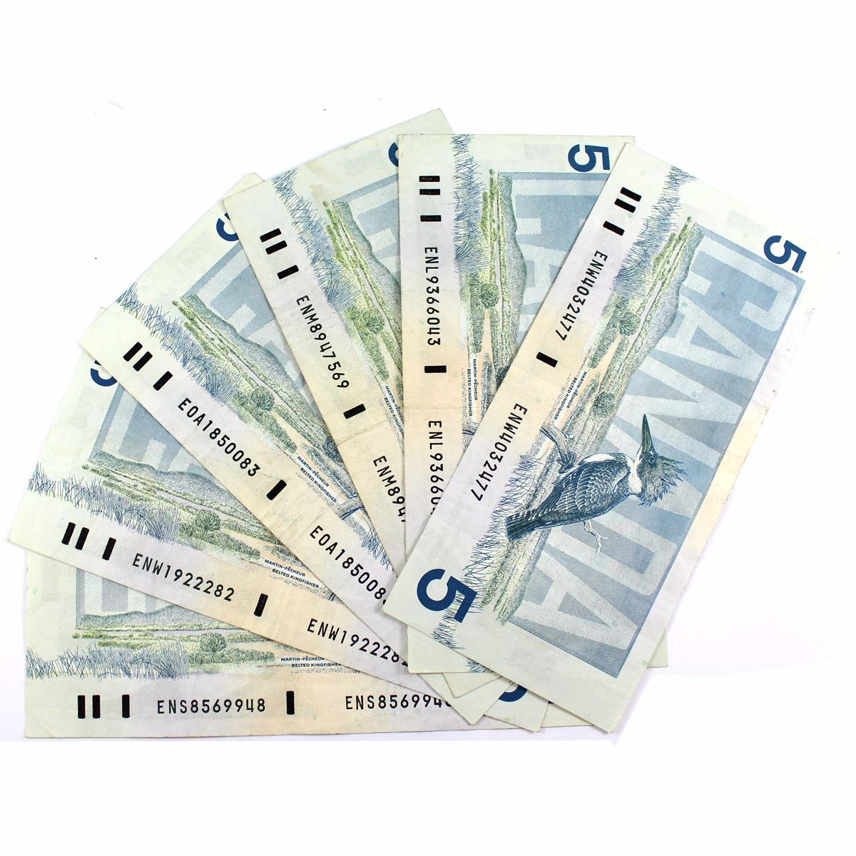 6 x 1986 $5.00 Canada Notes from the Bank of Canada with Scarce Crow-Bouey signatures