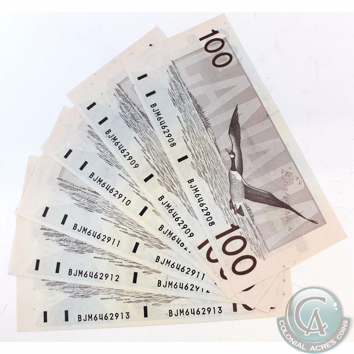6 x 1988 $100 Notes with Knight-Thiessen Signatures and Consecutive Serial Numbers. 6pcs