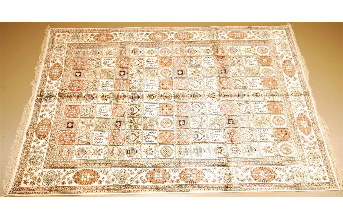 Hand made Oriental Tabriz silk rug. 2.5' x 12'. Tribal design.