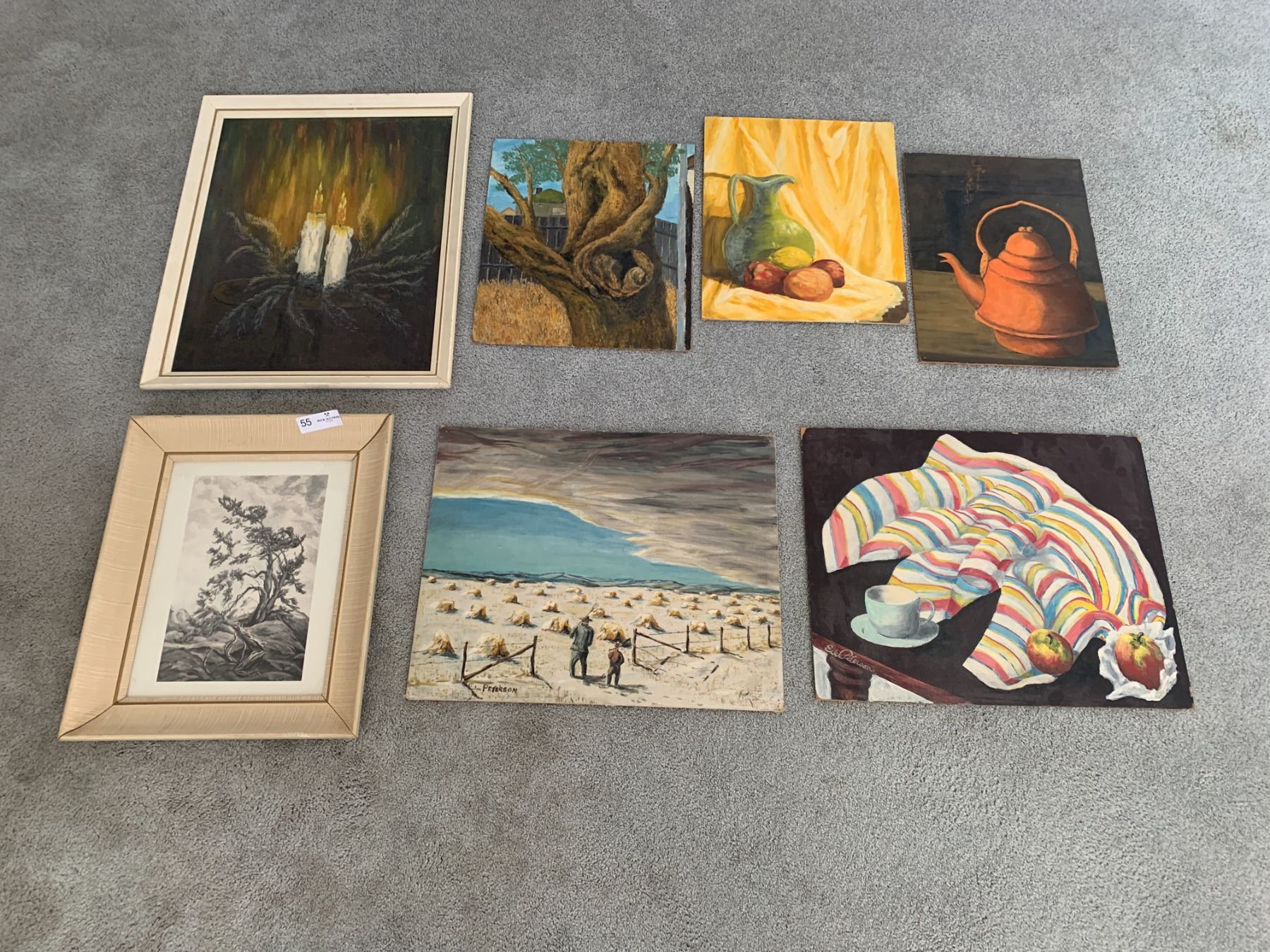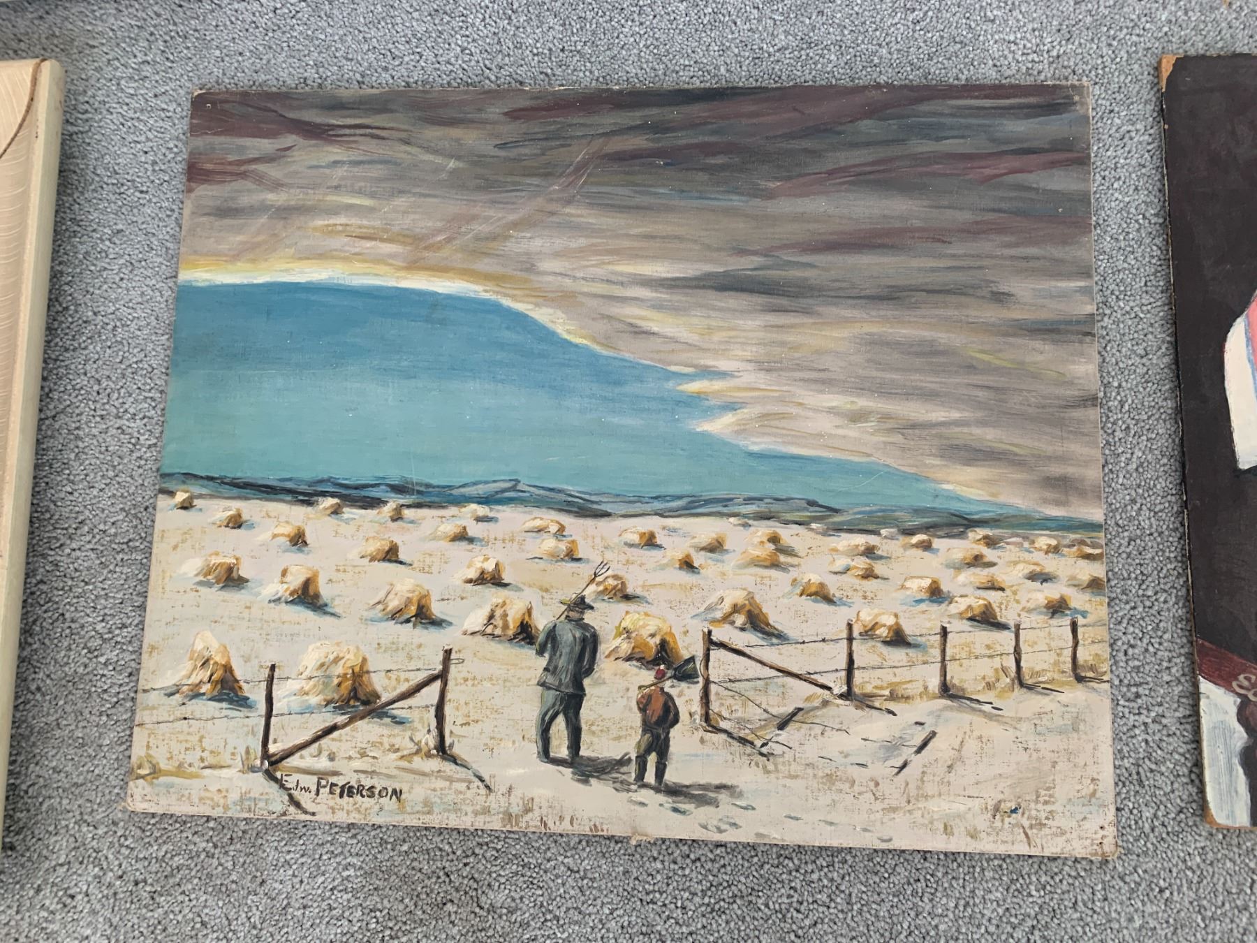 6 x Assorted Paintings - Includes 1 x Framed Painting and 1 x Framed Print by E.D.W Peterson