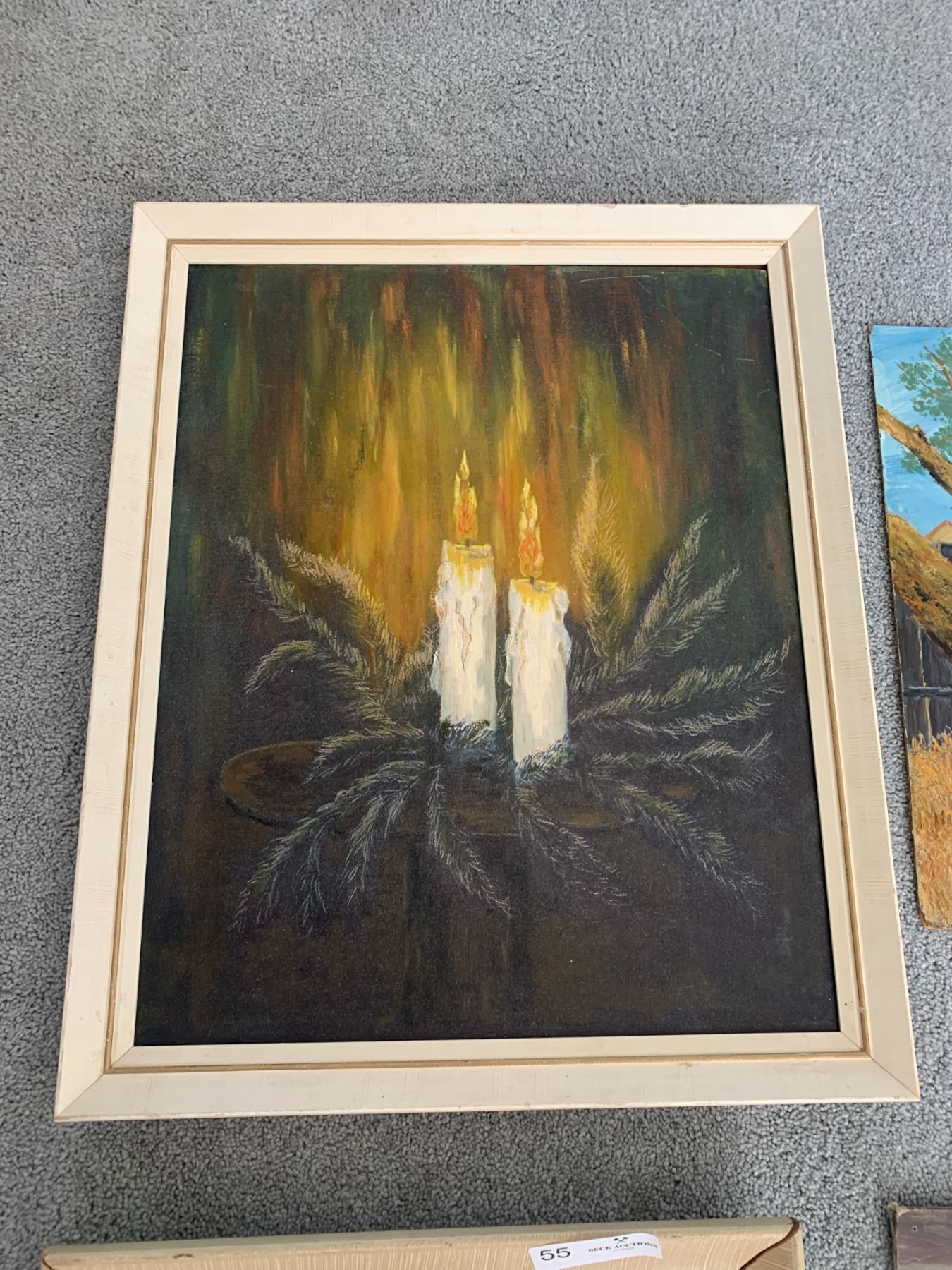 Largest (framed, painting of candles): 22.5" x 18.5"