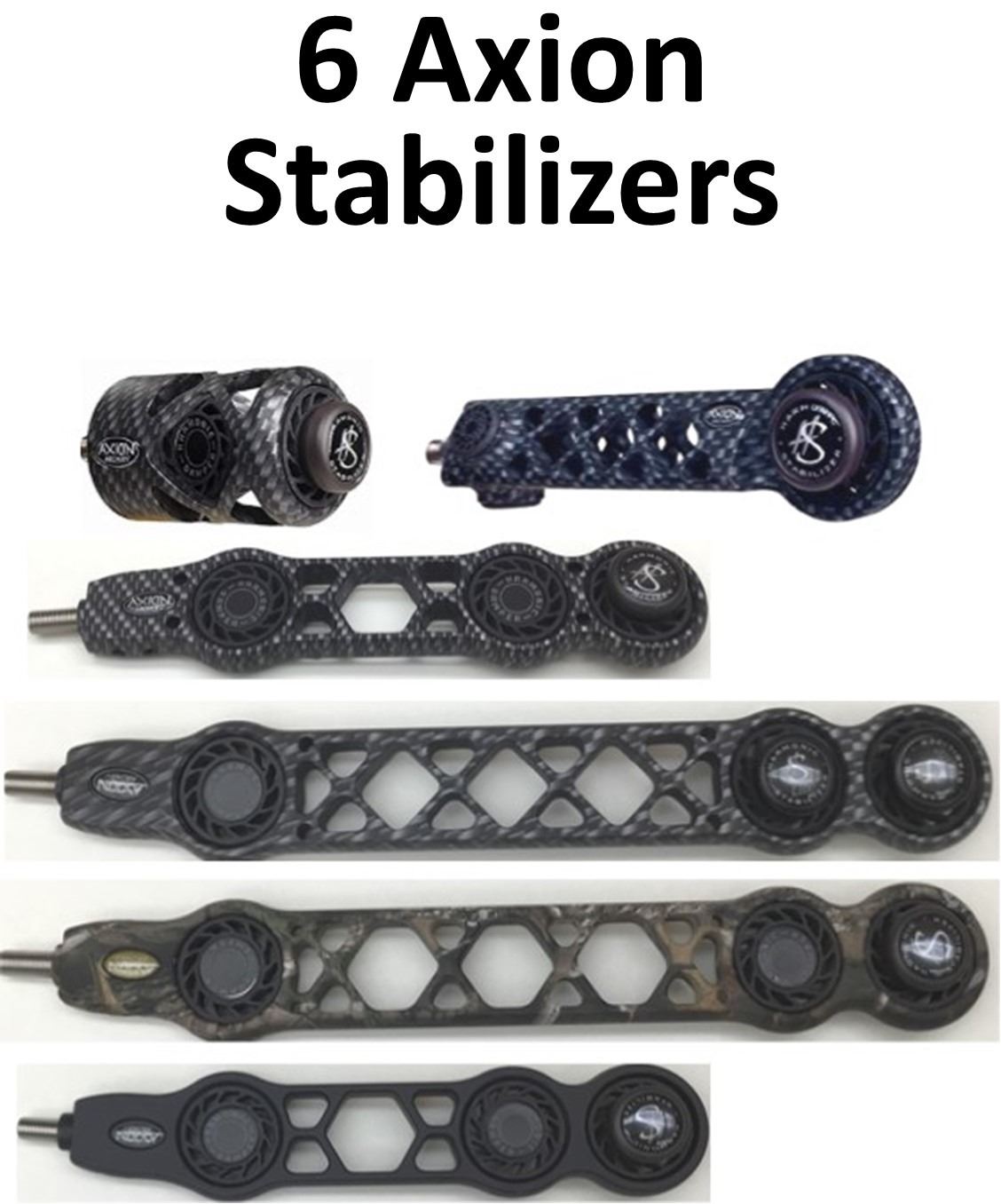 6 x Axion Stabilizers, GLZ 3 Lite Tact, 6" Triad Grid Tact, GLZ 8" Grid Tact, 2 x GLZ 11" Lite 3-D Hunter, 1-Grid Tact, 1-APR, GLZ 8" 3-D Hunter Black