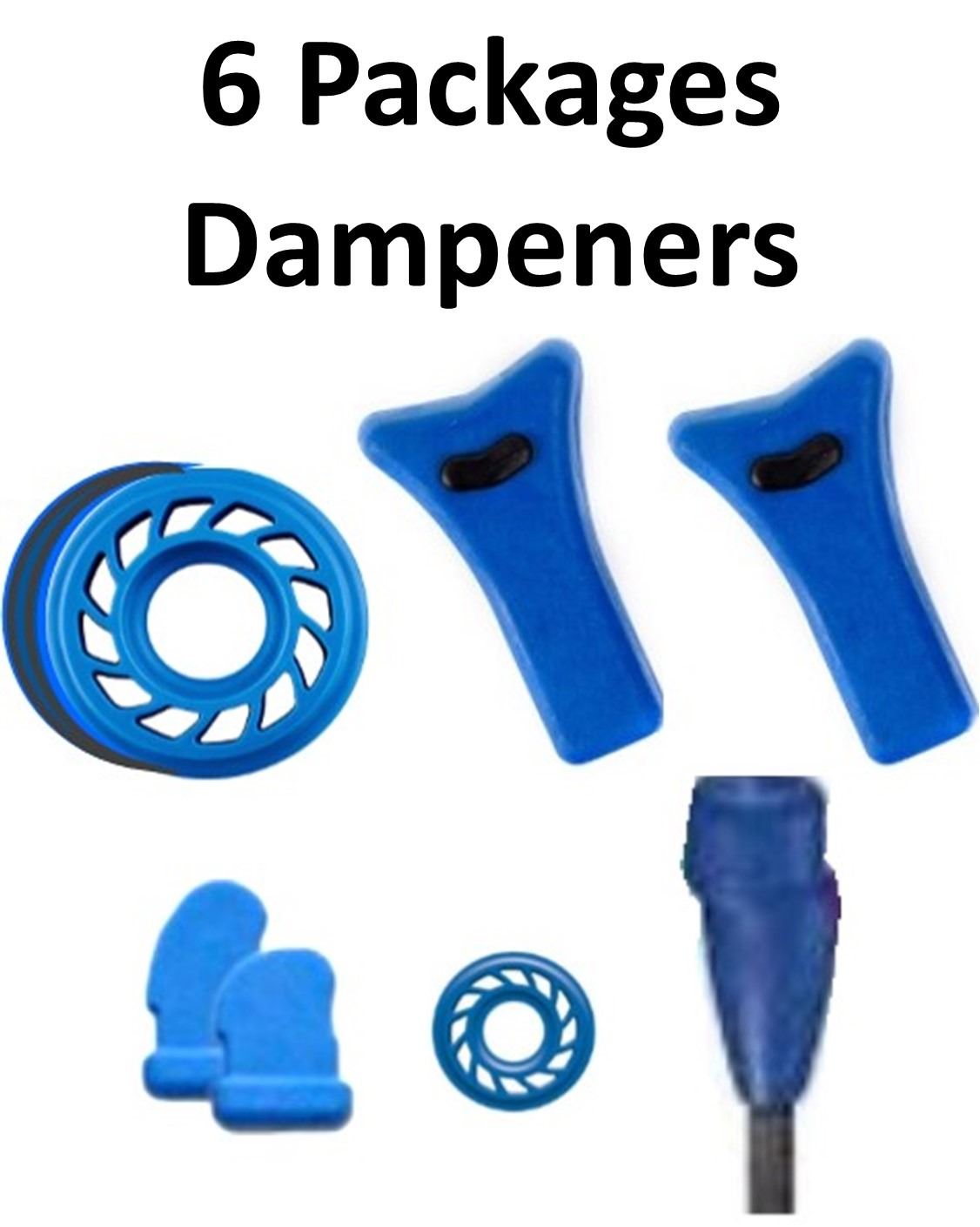 6 x Mathews Dampeners, 1-3/4" Harmonic Blue, 2-String Stop Blue, 1-String Suppressor Blue, 1-Mini Harmonic Blue, 1-String Stop (round) Blue