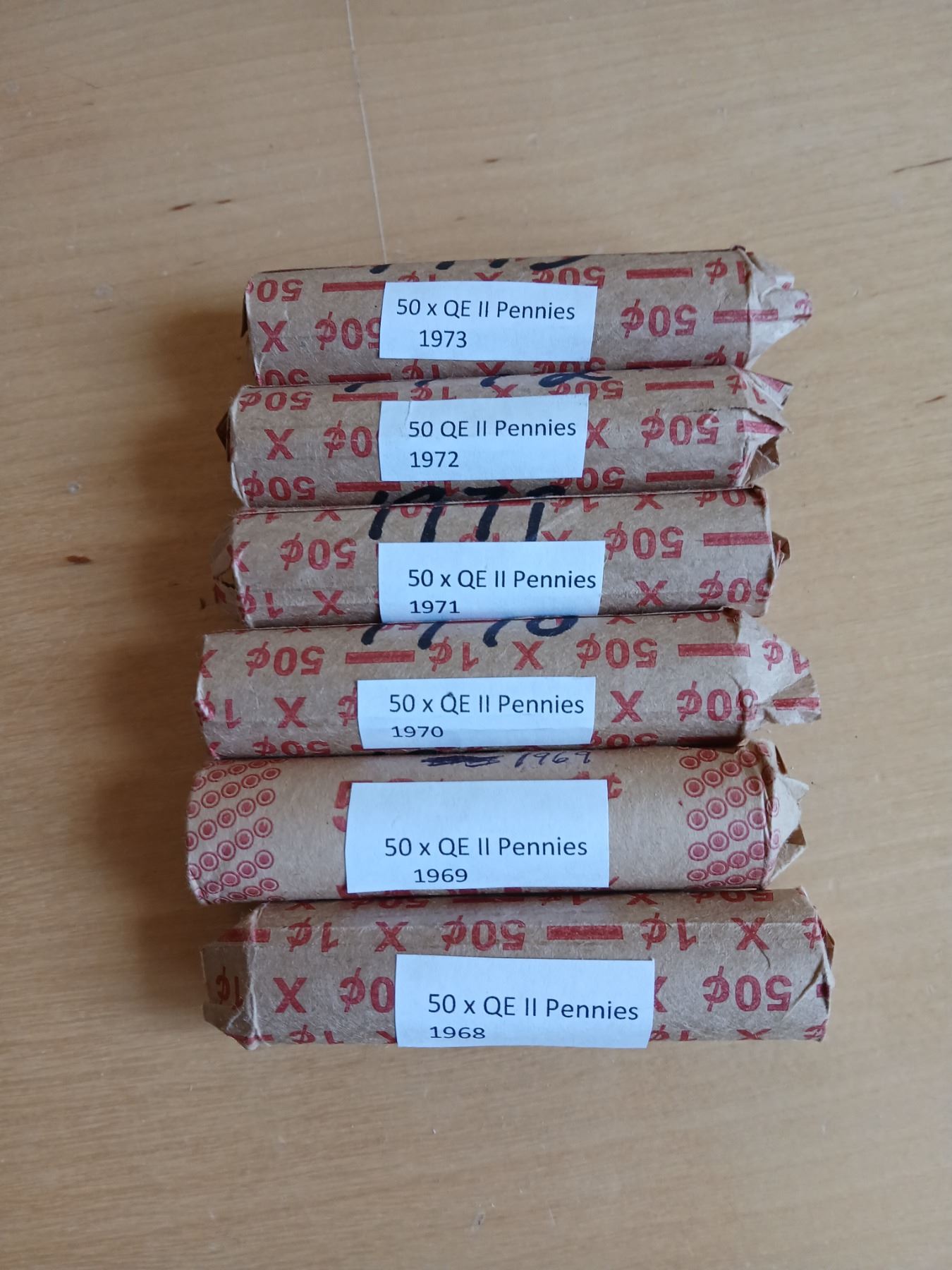 6 x QE II Pennies (Searcher Rolls 60's and 70's)