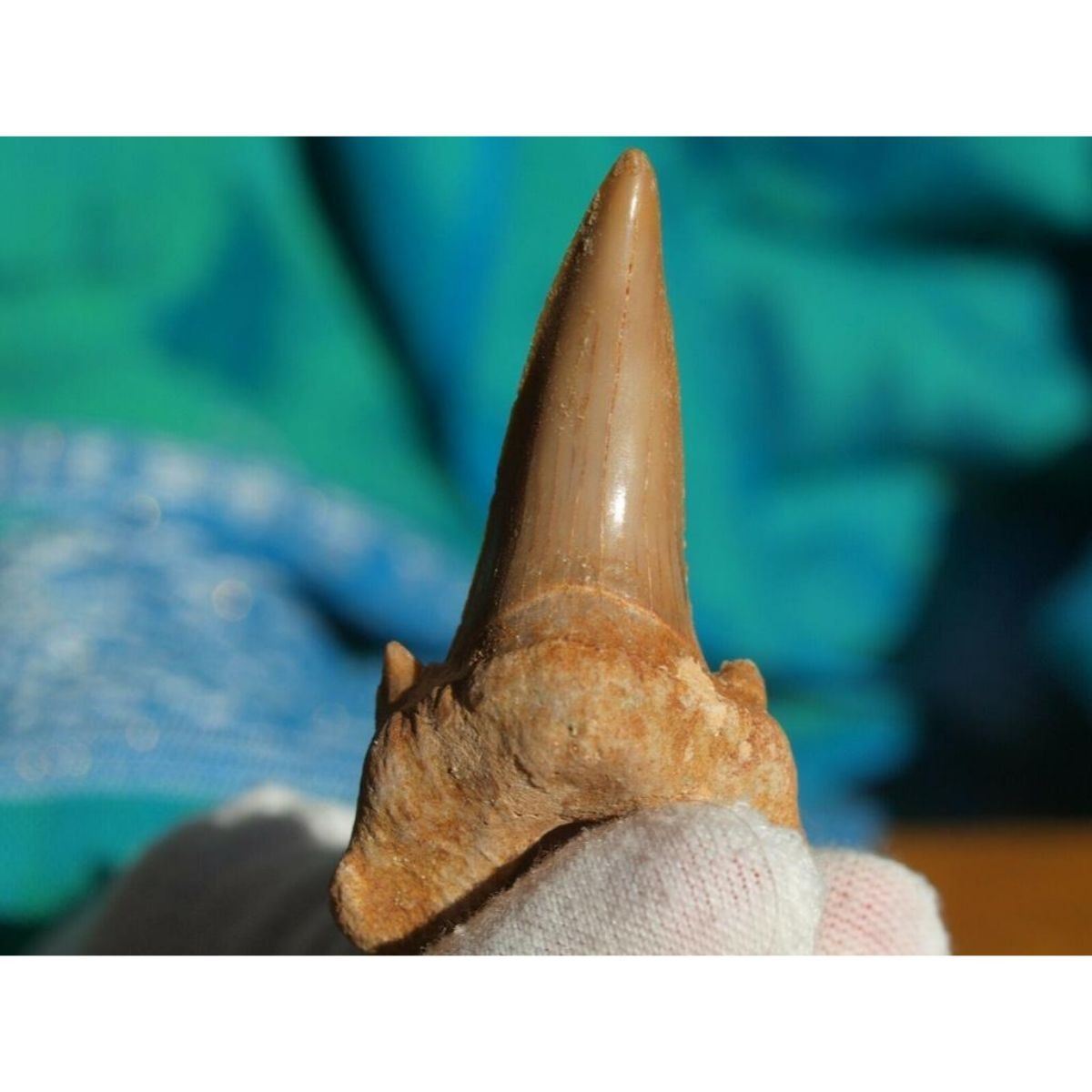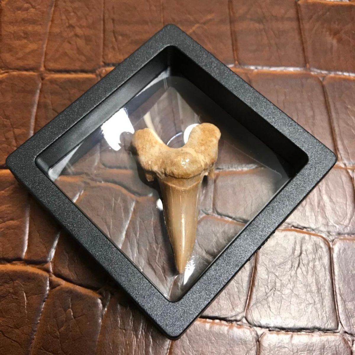 Prehistoric, 60 million year old Otodus shark tooth display fossil. 1.86" L. Comes with 2 3/4" square display case. Otodus is a very large extinct shark which lived from the Paleocene period to the Miocene period. The fossils of Otodus indicate that it was a super predatory shark like the Megalodon. The largest known teeth measure about 4.1 inches and the monster shark reached a maximum length of 40 feet long. Otodus likely preyed upon marine mammals, large bony fish, and other sharks. It was among the top predators of its time. Â