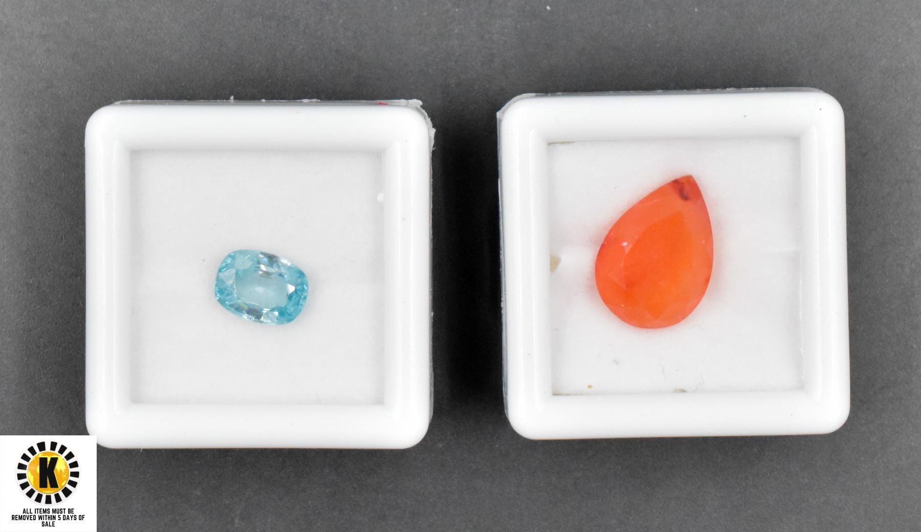 CAMBODIA SEA FOAM ZERCON HEATED 6.3X 8.3MM/INDIA CARMELIAN UNTEATD 10.1X14.2MM