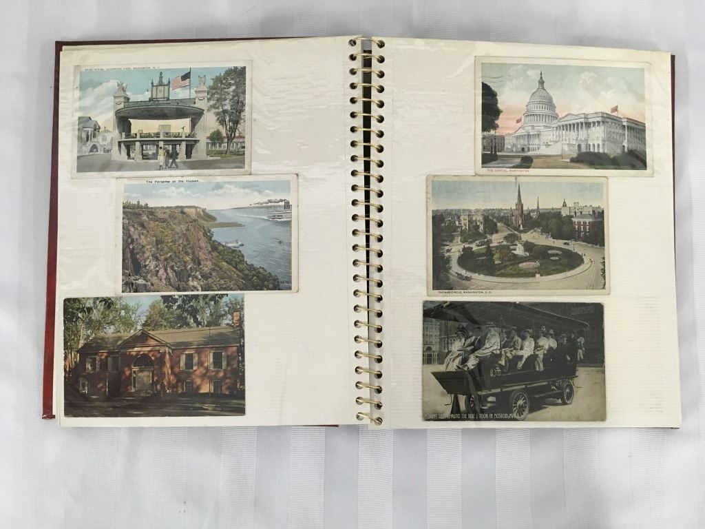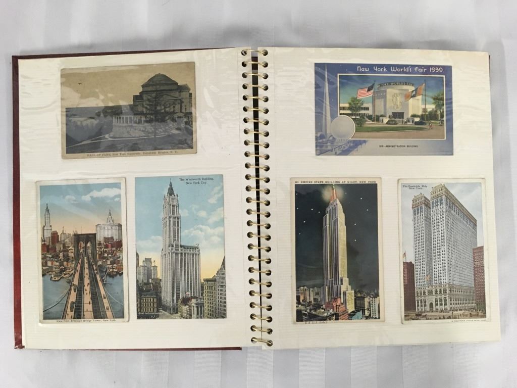 This is a lot of 61 American post cards, most of them being prewar. There is a mix of types, some RPPC, city scapes, 1939 New York Worlds Fair, 1912 sight seeing auto ride, Boston, steam ship and a 1922 RPP card of Harvey’s Mountain Vt. The condition varies from poor to very good, some wear, a few have creases/damage and ther are both post marked and unused.
